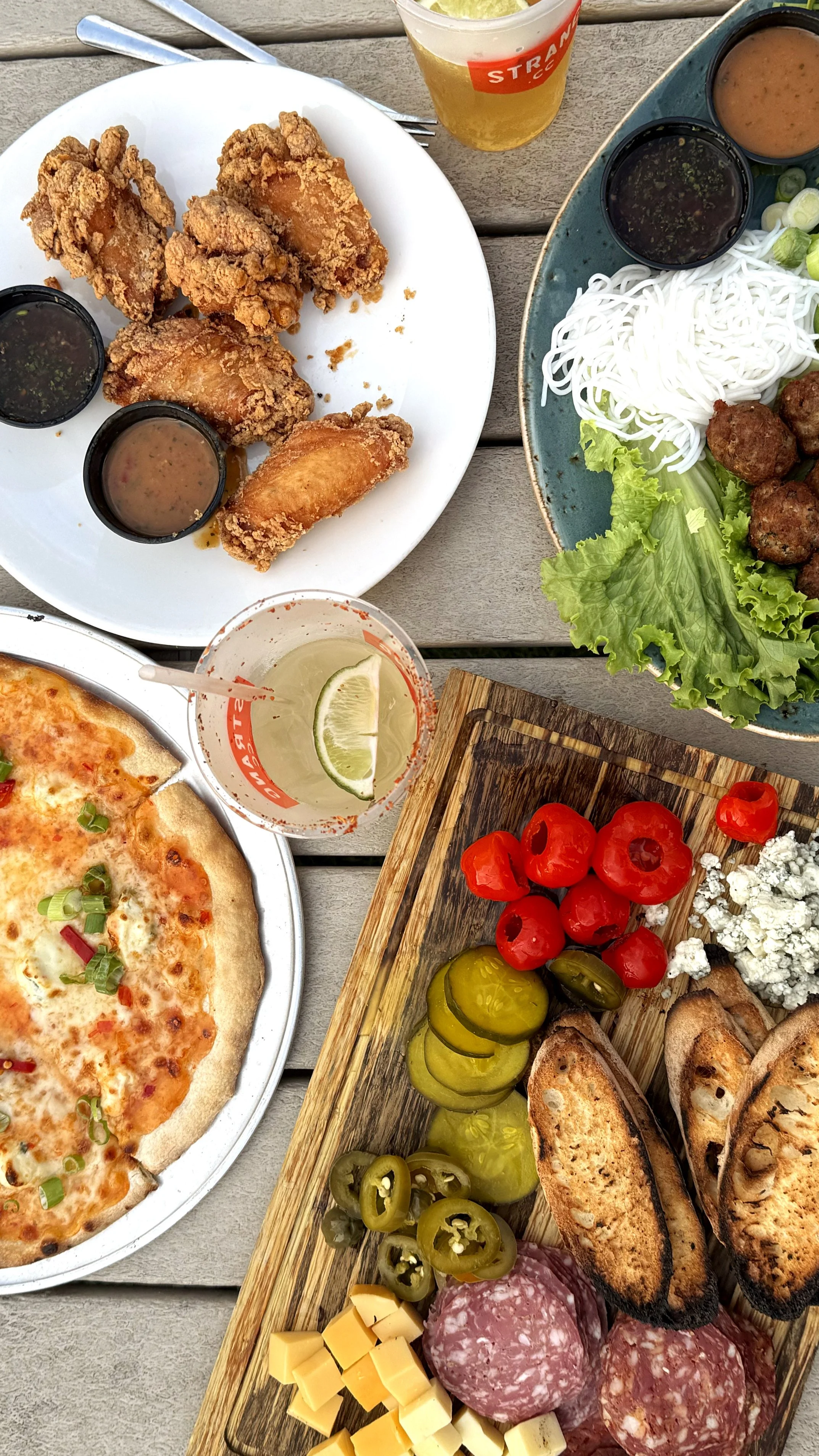 @norcinikc (unapologetically my favorite) Crab Rangoon Pizza - you WILL love it, I guarantee - and the Chef’s Board loaded with meat, cheese, peppers, jalapeños and crostini.